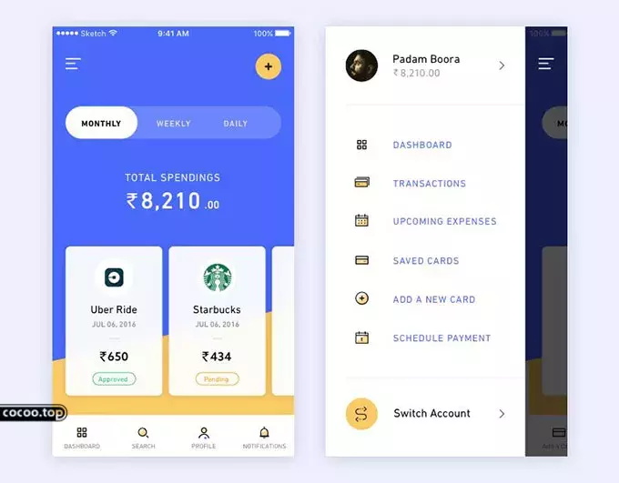 ⑤使用邻近色进行色彩搭配。一种颜色的纯度比较高的时候,另一种颜色纯度低或名度低的,这样搭配出的效果会比较好。以上只是一些基础的色彩搭配,初学者,如果能做到以上几点,相信界面设计也一定不会差。